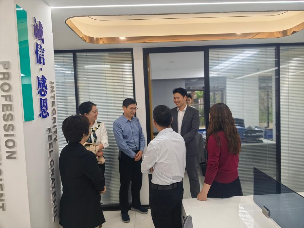 团队实地参观企业经营管理区、仓储物流区,直观了解了医疗器械企业现代化运营与智能化物流管理的实际运作。座谈中,双方围绕协同育人、实训基地共建等方面进行深入交流,并聘任唐忠兵董事长为四川省李本权卓越校长工作室行业导师。
